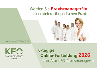 KFO-Management Berlin ist ein Weiterbildungs- und Beratungsunternehmen im Bereich der Kieferorthopädie. Zu seinen Kunden zählen in erster Linie kieferorthopädische Praxen, Fachlabore, Universitäten, Zahnärztekammern und Firmen der Dentalbranche. Das Kerngeschäft besteht in der KFO-Fortbildung mit Kursen zur angemessenen und transparenten BEMA-Abrechnung, zur GOZ-Abrechnung und zur KFO-Laborabrechnung sowie verschiedene Dienstleistungen rund um den Praxisalltag wie individuelle Beratungen, Schulungen und Praxisscreenings. Darüber hinaus ist KFO-Management Berlin Herausgeber der monatlichen Fachbroschüre KFO-KOMPAKT, die wertvolle Informationen für den Praxisalltag beinhaltet und zur KFO-Abrechnung. Zusätzlich werden zahlreiche Hilfsmittel zur KFO-Leistungsabrechnung und Kalkulation vertrieben. “Mehr Abrechnungsperlen fallen nicht vom Himmel Ein fundiertes Wissen über alle Themen der KFO-Abrechnung und die konsequente Anwendung stärkt den wirtschaftlichen Ertrag der Praxis. Doch Abrechnungsperlen fallen nicht vom Himmel. Durch kontinuierliche KFO-Fortbildungen bei KFO-Management Berlin haben Sie immer die aktuellen Entwicklungen im Blick, stärken Sie die Sicherheit Ihrer Abrechnungsperle und sorgen dafür, dass neue Mitarbeiter*innen für die KFO-Abrechnung zügig und systematisch weitergebildet und eingearbeitet werden. BDK-konforme, faire und transparente KFO-Abrechnung In Ihren speziellen Kursen zur KFO-Abrechnung bei Kassen- und Privatpatienten vermittelt Dipl.-Kffr. Ursula Duncker, Geschäftsführerin von KFO-Management Berlin, stets Abrechnungswissen in Übereinstimmung mit dem Berufsverband der Deutschen Kieferorthopäden (BDK). Die Abrechnung des vertragszahnärztlichen Honorares basiert auf dem Regelwerk des Einheitlichen Bewertungsmaßstabes für zahnärztliche Leistungen (BEMA-Abrechnung). Die Privatabrechnung hat die Gebührenordnung für Zahnärzte (GOZ) und die Gebührenordnung für Ärzte (GOÄ) zur Grundlage und schließt die aktuelle Kommentierung durch Liebold/Raff/Wissing ein. Besonderes Augenmerk legt Ursula Duncker auf die Vermittlung einer fairen und transparenten Kalkulation von privaten Mehr-und Zusatzleistungen für Kassenpatienten (AVL). Nichts verschenken durch kompetente private Laborabrechnung Die KFO-Abrechnung für die erbrachten Leistungen im Eigenlabor ist ein Spezialgebiet von Ursula Duncker. Hier vermittelt Sie unter anderem die Grundlagen zur Kalkulation von privaten Laborpreisen unter Berücksichtigung der vom Verband Deutscher Zahntechniker-Innungen (VDZI) herausgegebenen Bundeseinheitlichen Benennungslisten BEB 1997 und BEB 2009. In dem bekannten Laborabrechnungskurs von KFO-Management Berlin werden die einzelnen Labornummern erläutert. Dieser Laborabrechnungskurs ist im Bereich der KFO-Schulung extrem nachgefragt. Denn durch die konsequente Anwendung der beiden privaten Laborlisten BEB 1997 oder BEB 2009 in der Laborabrechnung erreichen Labore, dass die tatsächlich erbrachten Laborleistungen für die Privatpatienten auch vollständig abgerechnet werden können. Dadurch steigt der Eigenlaborumsatz deutlich. Beratungen/Schulungen/Screenings: Wir sorgen für KFO-Prozessoptimierung Ihre KFO-Praxis besteht schon länger, Sie sind aber der Meinung, „sie läuft irgendwie nicht richtig rund“ und Sie wissen nicht „wo es hakt“? Sie haben spezielle Fragen zum Praxisablauf, zur KFO-Abrechnung, haben individuelle Wünsche und suchen neue Ideen? Mit einem spezifischen Praxisscreening erhalten Sie Antworten. KFO-Management Berlin kann Sie mit einem Beratungsangebot wirksam unterstützen. Bei einem Praxisscreening werden Ihre sämtlichen Praxis- und Laborprozesse von KFO-Management Berlin nach dem „4-Augen-Prinzip“ analysiert, bewertet und optimiert. Wir schauen genau hin, decken Schwachstellen auf, finden unentdeckte Potenziale und geben neue Impulse, um den wirtschaftlichen Erfolg Ihrer Praxis zu verbessern. “Weniger